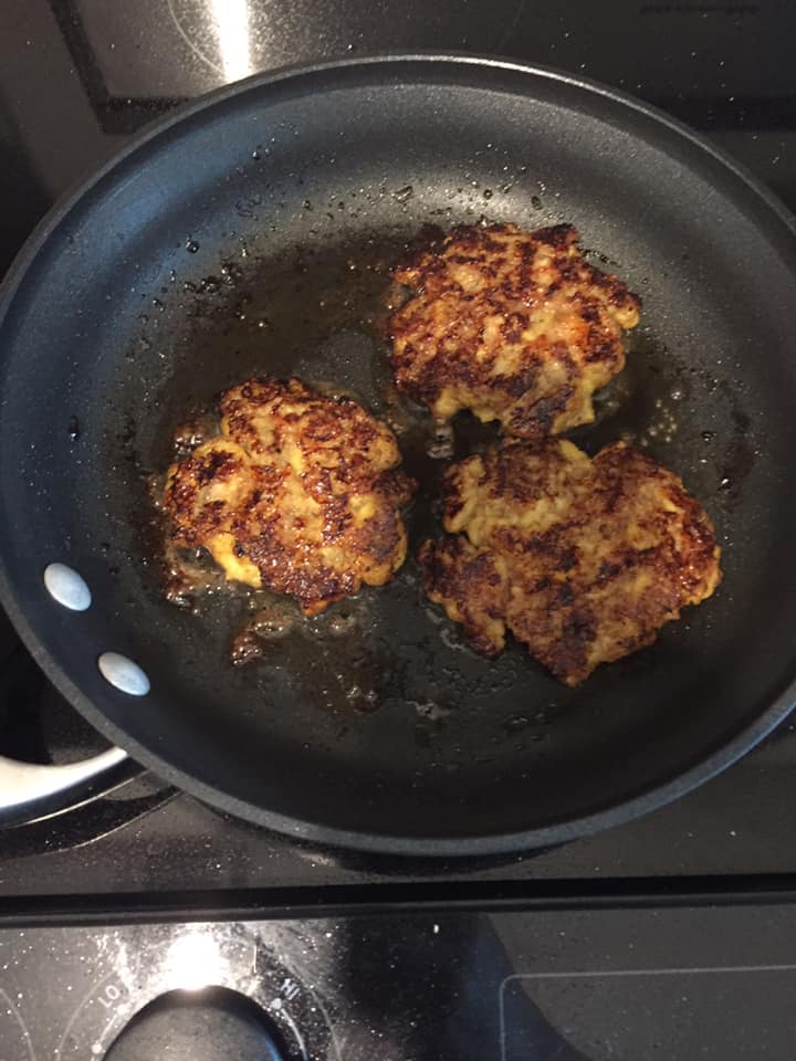 We’ve been steadily eating them as they ripen but faced a large quantity this morning that were all ready. So, I brainstormed and decided to peel, mash, and make some fried banana cakes. They were delicious. What a wondrous solution to Bananarama 2019!